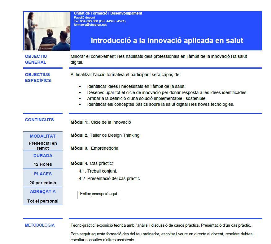 El full d'inscripció s'ha d'enviar a: formacio@vhebron.net