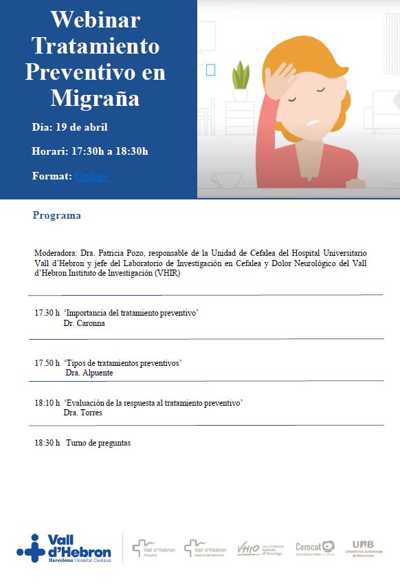 Moderadora: Dra. Patricia Pozo-Rosich, responsable de la Unidad de Cefalea del Hospital Universitario Vall d’Hebron y jefe del Laboratorio de Investigación en Cefalea y Dolor Neurológico del Valld’Hebron Instituto de Investigación (VHIR)