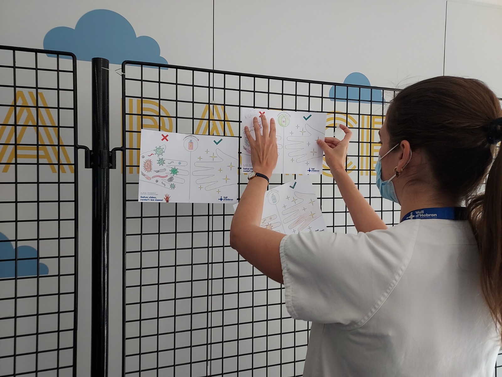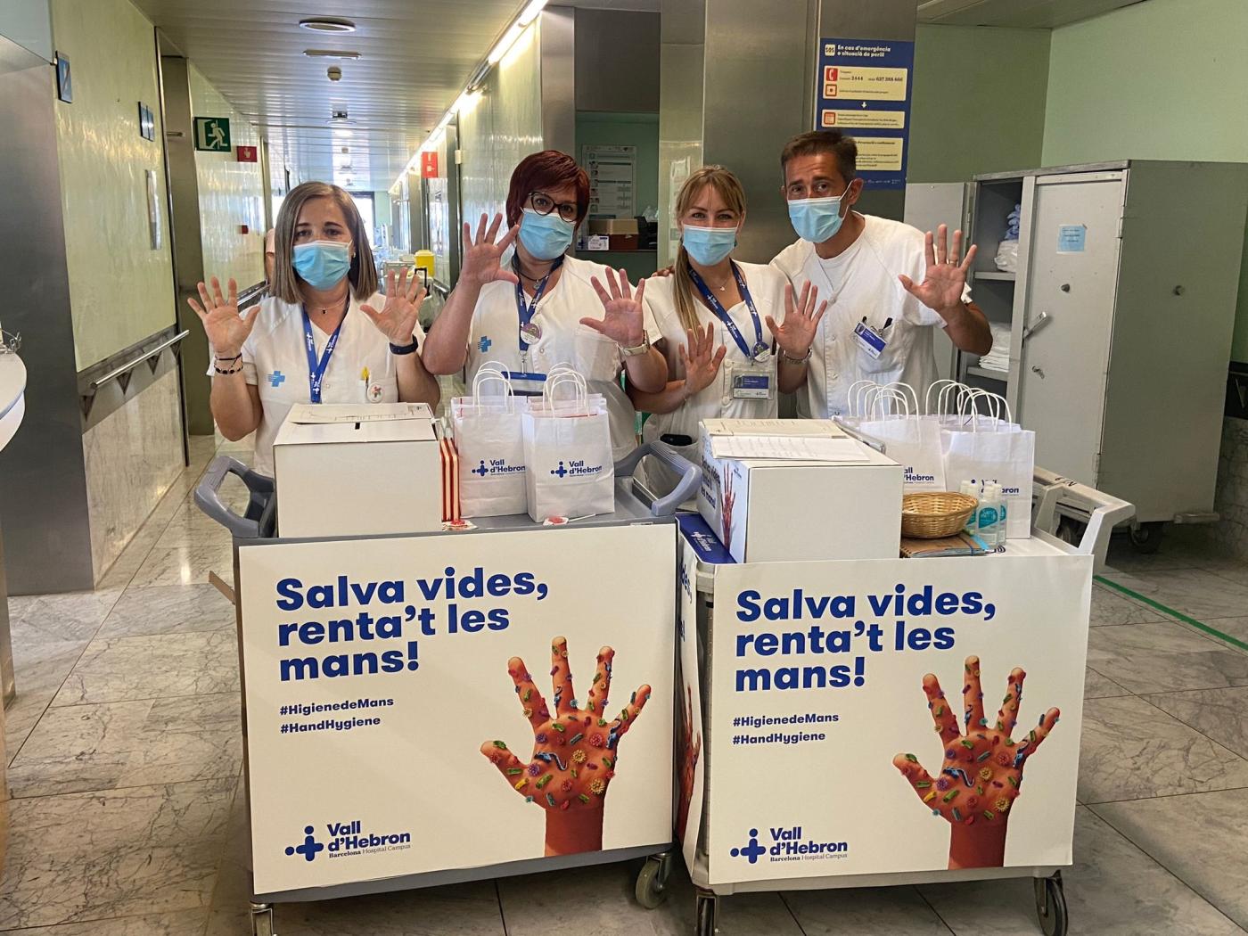 Avui, 5 de maig de 2023, se celebra el Dia Mundial de la Higiene de Mans, impulsat per l’Organització Mundial de la Salut (OMS) des de l’any 2009. En aquest sentit, l’Hospital Universitari Vall d’Hebron des de fa anys fa una aposta ferma per inculcar la cultura de la higiene de mans entre el personal sanitari. Per això, durant el dia d’avui, uns membres de la Subcomissió d’Higiene de Mans de l’Hospital Universitari Vall d’Hebron s'han desplaçat per les diferents plantes de l’Hospital repartint informació sobre aquesta pràctica higiènica entre el personal sanitari, així com productes desinfectants de mans, per tal de conscienciar de la importància de fer una bona higiene. També s'ha celebrat entre els i les professionals un concurs amb preguntes relacionades amb la higiene de mans en què el guanyador ha obtingut un regal, un per cada centre hospitalari de Vall d’Hebron. Per altra banda, els nens i nenes ingressats a l’Hospital Infantil han fet dibuixos per conscienciar de la importància de seguir aquesta mesura higiènica.