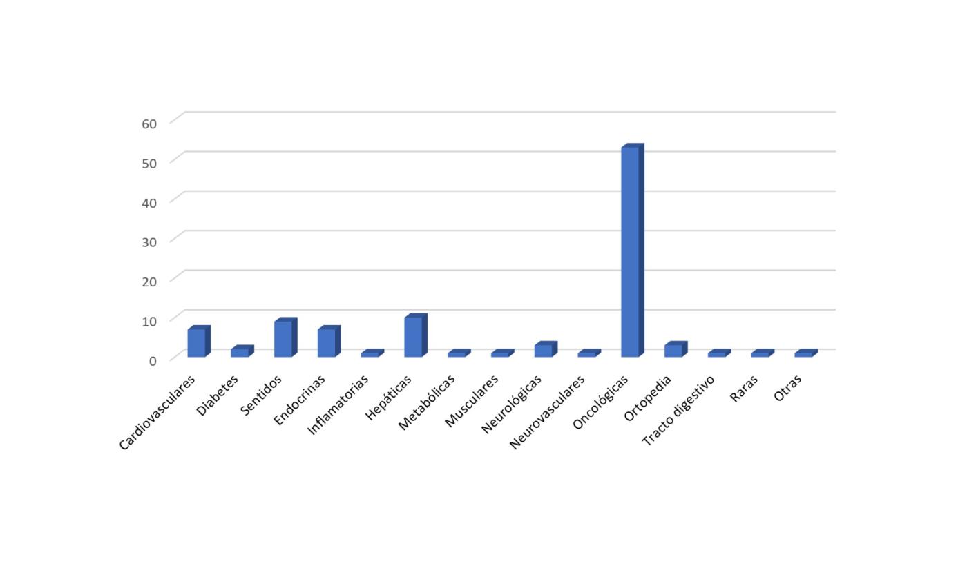 Del total dels 105 models animals aportats a aquest catàleg pel Vall d’Hebron, destaquen els models de càncer (Fig. 2 i 3) que es converteixen numèricament en la contribució més significativa a aquest catàleg. Igualment és molt destacable la contribució d'un model animal de malaltia de Fabry classificada com una malaltia rara. La resta de models són igualment rellevants com els models d'infart al miocardi, diabetis, glaucoma, obesitat, colitis ulcerosa, cirrosi hepàtica, malalties autoimmunes, migranya, infart cerebral, melanoma, espina bífida, síndrome d'intestí irritable, etc. entre altres. (Fig. 2)