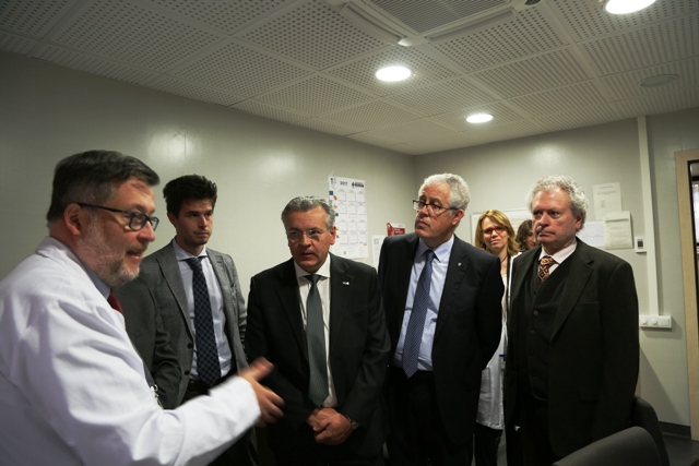 El conseller Dies també es va reunir amb el gerent de Vall d’Hebron, el Dr. Vicenç Martínez Ibáñez, i la directora assistencial, la Dra. Ana Ochoa de Echagüen, per conèixer de primera mà el funcionament d’aquests equips. També hi van assistir la cap del Servei de Física i Protecció Radiològica, la Dra. Mercè Beltran, el cap del Servei d’Oncologia Radioteràpica, el Dr. Jordi Giralt, el cap del Servei de Medicina Nuclear, el Dr. Joan Castell, i el cap del Servei de Radiologia, el Dr. Manel Escobar.