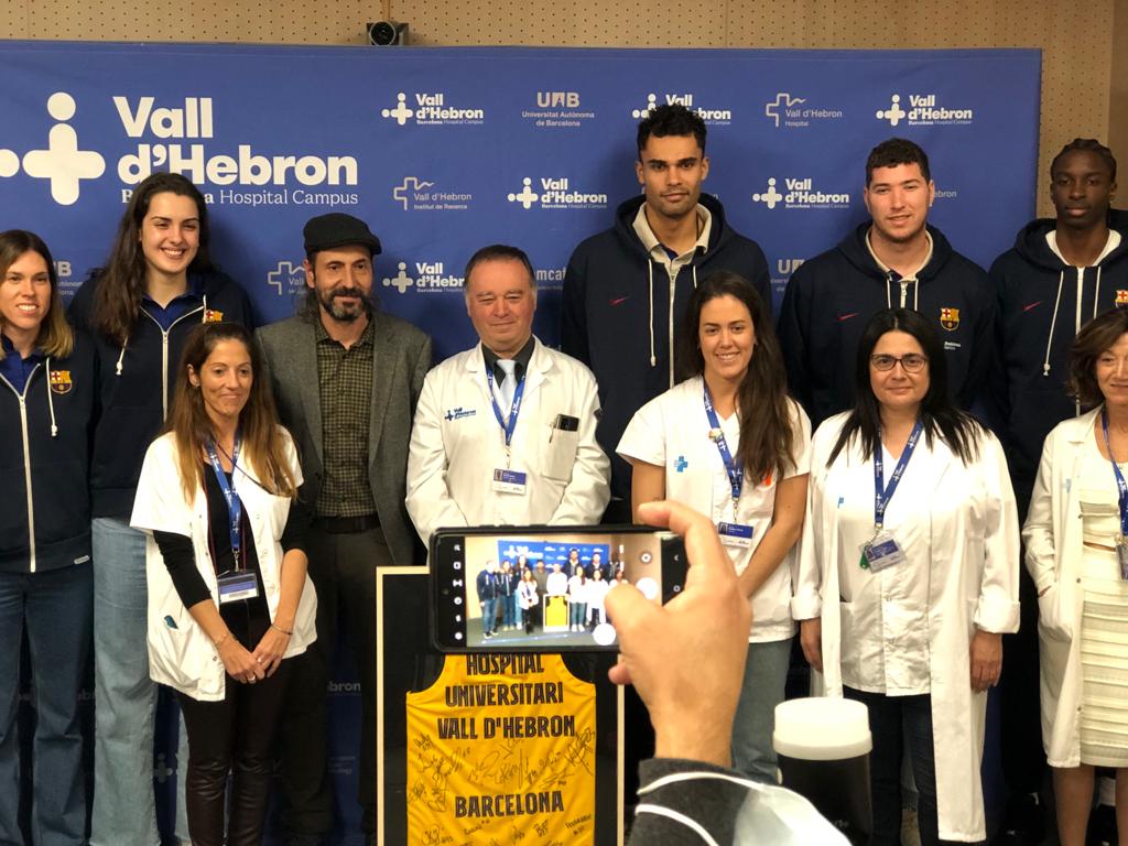 La delegació del FC Barcelona ha estat rebuda pel Dr. Antonio Roman, director assistencial de l’Hospital Universitari Vall d’Hebron, i Maria Ángeles Aceituno, adjunta a la Direcció d’Infermeria, als quals s'ha entregat una samarreta signada pels jugadors i jugadores emmarcada, llesta per penjar. "Aquí trobareu lluitadors, com vosaltres, però en un marc en el que no esteu acostumats. A la pista de bàsquet hi ha esforç i dedicació, però esteu en un ambient festiu. Aquí també veureu esforç, però el context és un altre", ha avançat el Dr. Antonio Roman. Després d’intercanviar unes paraules, els jugadors Joel Parra, Oscar da Silva i Dame Sarr, i les jugadores Anna Cruz, Paula Ginzo i Jolene Anderson han dedicat hora i mitja a visitar la planta d’hospitalització d’Oncologia Pediàtrica, la planta d’Hospitalització de Cirurgia Pediàtrica i la Unitat de Trasplantats Infantils. Dividits en tres grups, els jugadors, jugadores i la resta de la delegació blaugrana han compartit emocions, signat autògrafs, s’han fet ‘selfies’ i han repartit obsequis i i il·lusió. Una teràpia formidable per a aquests nens, nenes i adolescents que atravessen moments delicats. L'estat emocional i un entorn favorable tenen un paper clau en l'eficàcia dels tractaments i en la millora dels processos de recuperació dels infants.