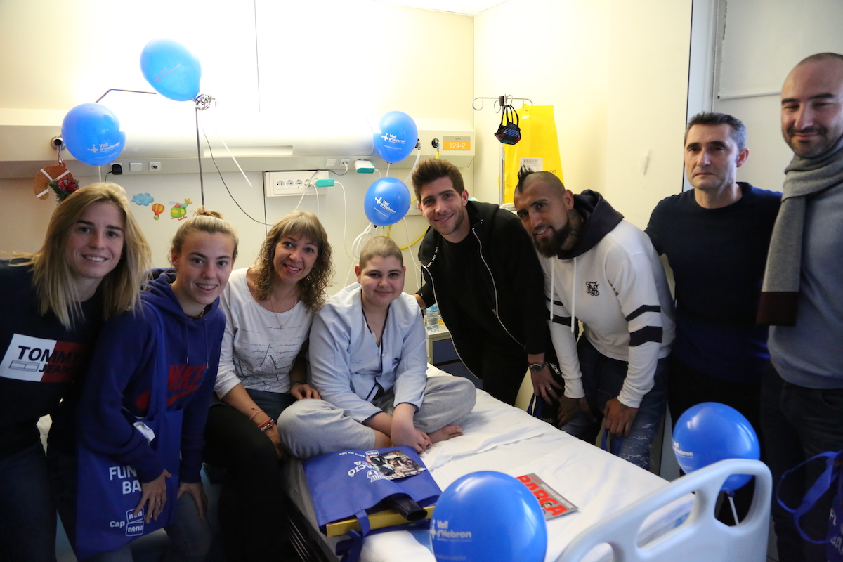 Ivan Rakitic, Sergi Roberto, Jeison Murillo, Arturo Vidal, Munir El Haddadi, Patricia Guijarro, Aitana Bonmatí, Bárbara Latorre, Candela Andújar, jugadors i jugadores dels primers equips de futbol masculí i femení del FC Barcelona, han visitat als nens ingressats a l'Hospital Infantil Vall d’Hebron. Tambén han estat presents Ernesto Valverde i Fran Sánchez, entrenadors dels equips masculí i femení respectivament. Una emotiva visita que tant els nens ingressats com els seus familiars han rebut amb il·lusió i alegria.
