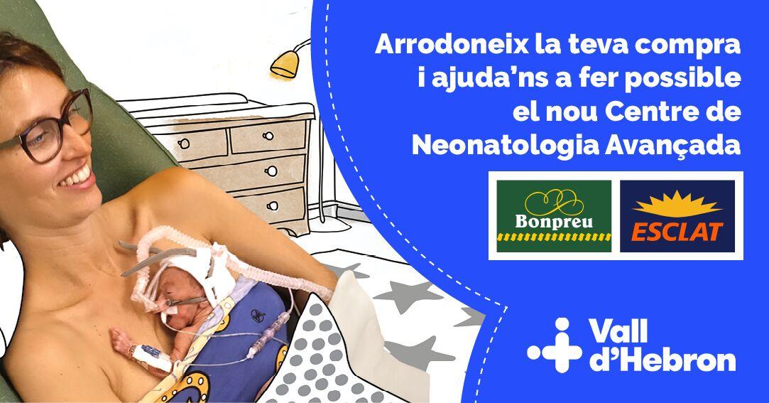 Des de l’1 fins al 30 de novembre tots els establiments Bonpreu Esclat donen als seus clients l’opció d’arrodonir la compra en els pagaments que realitzin per Terminal Punt de Venda (TPV, amb targeta de crèdit o dèbit). Els fons que Bonpreu Esclat recaptin a través d’aquests arrodoniments aniran destinats a la campanya ‘Amb tu, com a casa’, que té com a objectiu ajudar a fer possible un nou Centre de Neonatologia Avançada a Vall d’Hebron. El projecte contribuirà a situar el nadó i la seva família en el centre de l’atenció assistencial i potenciarà el Servei de Neonatologia com a referent internacional a través de l’assistència i la recerca en aquest camp.