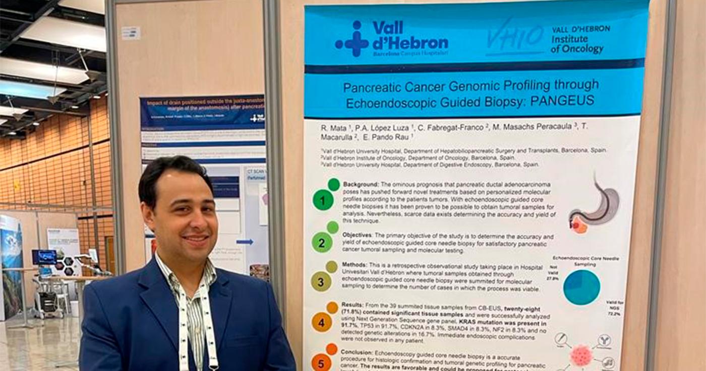En el segon, exposat pel Dr. Mata i realitzat conjuntament amb la Unitat d'Endoscòpia Digestiva (Dr. Monder i Dr. Masachs), s'ha provat la fiabilitat de realitzar, en el moment del diagnòstic, una endoscòpia d'agulla gruixuda guiada per ultrasons per assolir mostres tumorals sobre les quals es pugui fer una anàlisi molecular d'última generació. El procediment és clau per identificar dianes terapèutiques des del minut 0, la qual cosa permet un tractament personalitzat i més eficaç.