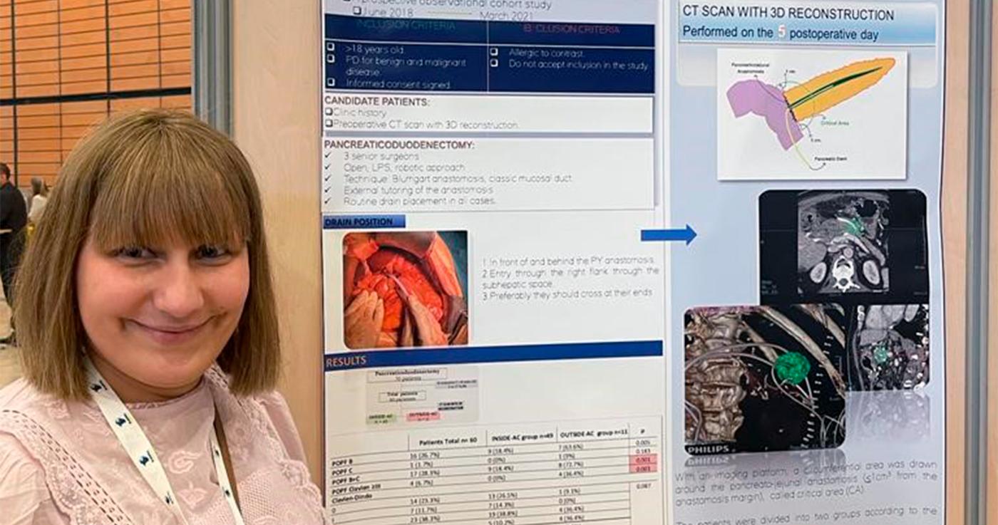 La Dra. Claudia Cabau, del servei de Cirurgia General i Digestiva de l'Hospital Universitari Vall d'Hebron, va presentar un cas d'una intervenció Puestow Modificada completament robòtica en un pacient amb pancreatitis crònica. Aquesta intervenció que consisteix a fer anastomosis o unir quirúrgicament entre el pàncrees i el jejú, (una part de l'intestí prim) en el seu format manual és un dels tractaments estàndard per aquesta patologia. Els resultats de la Dra. Cabau mostren la viabilitat de l'ús de la robòtica per aquest tipus d'operacions, el que facilita el procés de recuperació.