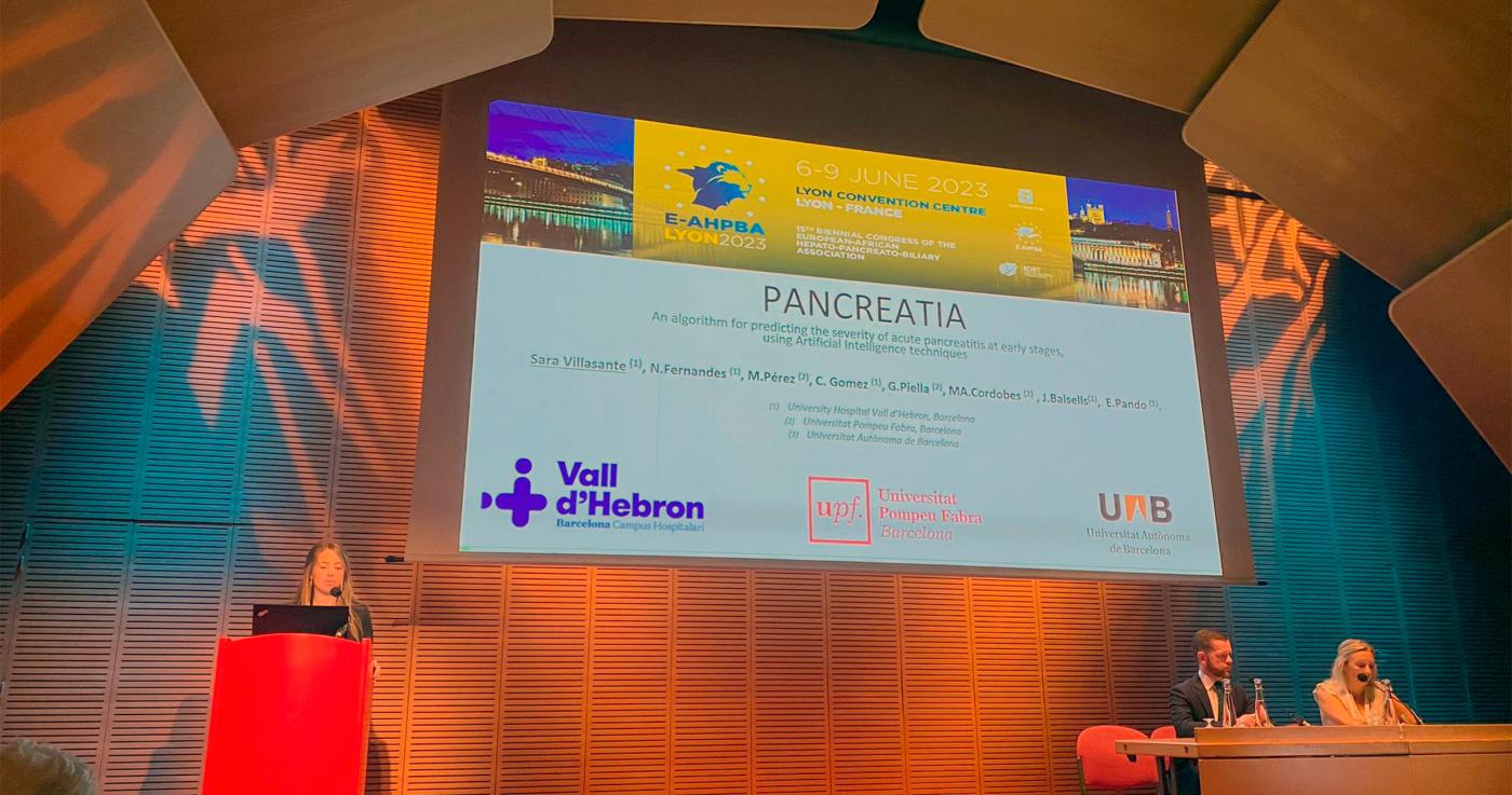 En el primer, presentat per la Dra. Villasante, es van utilitzar tècniques d'intel·ligència artificial per preveure la severitat de la pancreatitis aguda. El pronòstic es pot aconseguir emprant dades procedents dels antecedents mèdics del pacient i del seu examen físic, sense necessitat de fer tests addicionals.