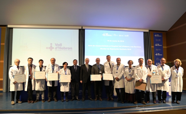 Representants del Monitor de Reputació Sanitària de Merco (Monitor Empresarial de Reputació Corporativa) han fet entrega avui dels diplomes que reconeixen l’excel·lent tasca assistencial de l’Hospital Vall d’Hebron. El Monitor de Reputació Sanitària (MRS) de Merco és l'únic estudi independent que analitza la reputació del sistema sanitari espanyol. Per realitzar l'estudi, es fa servir una metodologia que combina la percepció del públic amb la realitat del sector. Es tracta de la cinquena edició d'aquest estudi, que avalua la reputació sanitària en diferents categories: Serveis Hospitalaris, Hospitals, Laboratoris Farmacèutics, Empreses de Tecnologia, Empreses de Dispositius Biomèdics, Asseguradores de Salut, Centres de Salut i Fabricants de Productes Sanitaris. Merco compta amb el suport d’un consell assessor format per representants del Consell General de Metges i del Consell General d'Infermeria, associacions de pacients, periodistes i comunicadors sanitaris, així com persones de reconegut prestigi i trajectòria en la sanitat espanyola.