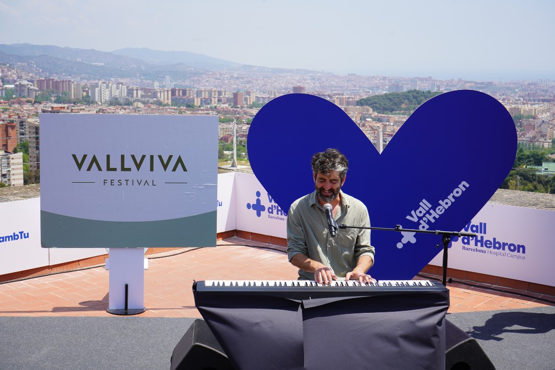 El cantant Joan Dausà ha ofert avui una actuació musical al terrat de l’Hospital Universitari Vall d’Hebron per presentar la 3ª edició del festival VALLVIVA, que enguany col·labora amb dos projectes de Vall d’Hebron per avançar en la recerca del càncer. “Em feia molta il·lusió venir a l’acte organitzat per Vall d’Hebron i VALLVIVA. L’Hospital ens ha acollit i ajudat en moments importants de la nostra vida, i la feina que feu és imparable”, ha traslladat Joan Dausà als professionals i representants de la fundació VALLVIVA. El festival és una iniciativa de la fundació VALLVIVA, que integren les empreses Royal Verd i Noel Alimentària, i col·labora amb Vall d’Hebron amb més projectes. Sense anar més lluny, els beneficis de la primera edició d’aquest festival van contribuir a finançar el projecte Realitat Millorada de l'Hospital Infantil, de la Fundació A.Bosch, la Fundació Aladina i la Fundació Small.