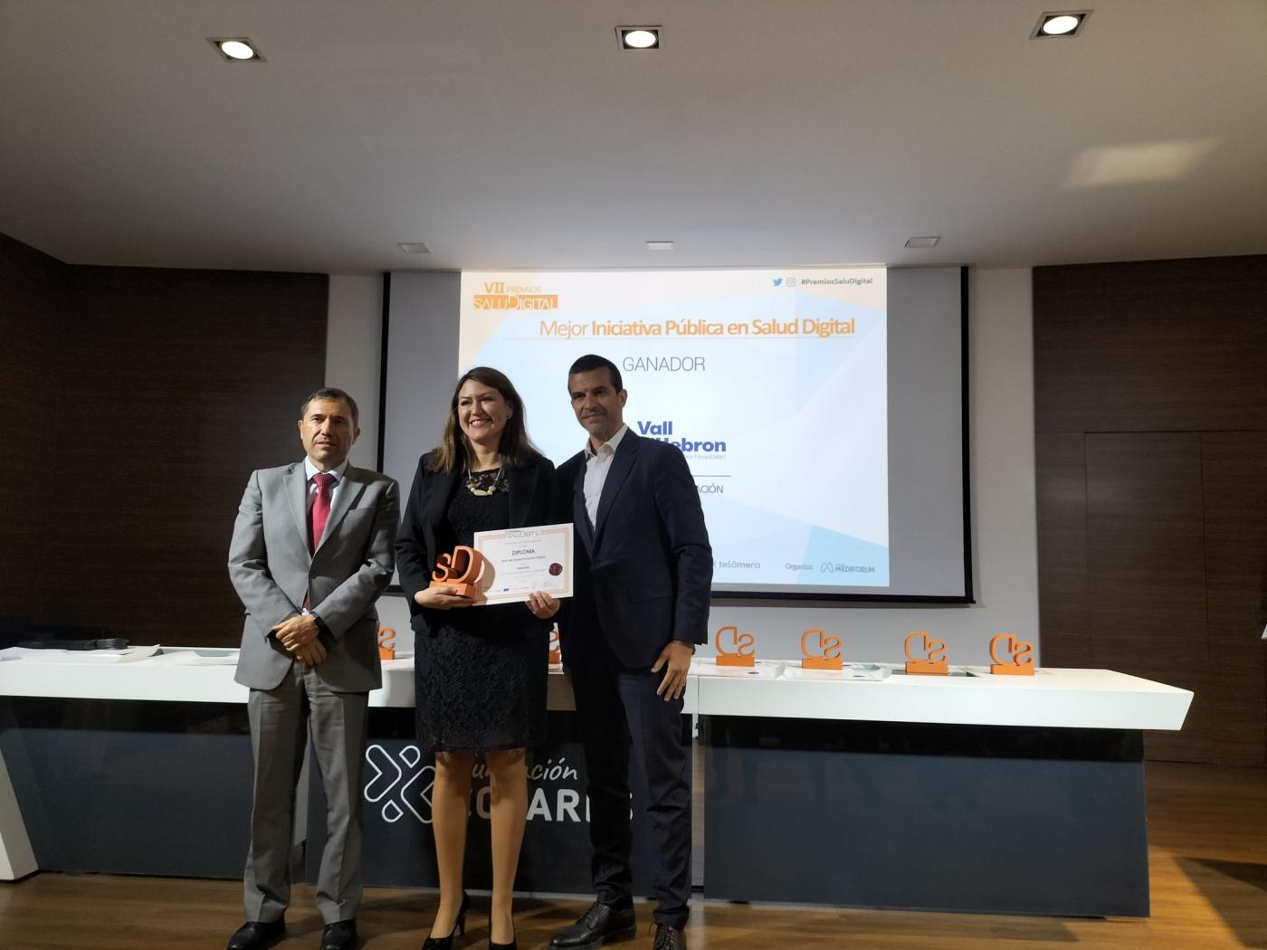 La Ruta de Transformació Digital de Vall d’Hebron, un projecte liderat per la Comissió de Transformació Digital de l’Hospital en la qual han participat més de 70 clínics, 20 gestors i 10 empreses de tecnologia, ha estat distingida als VII Premis SaluDigital en la categoria de millor Iniciativa Pública en Salut Digital. La Dra. Yolima Cossio, directora de Sistemes de la Informació de Vall d’Hebron, va recollir ahir el guardó, que organitza la publicació online SaluDigital.es, que pertany al Grup Mediforum, i té per objectiu reconèixer les iniciatives desenvolupades en l'àrea de la salut, tant del sector públic com privat, que contribueixin a millorar la salut, el benestar i la qualitat de vida de les persones mitjançant les noves tecnologies de la informació i les comunicacions.