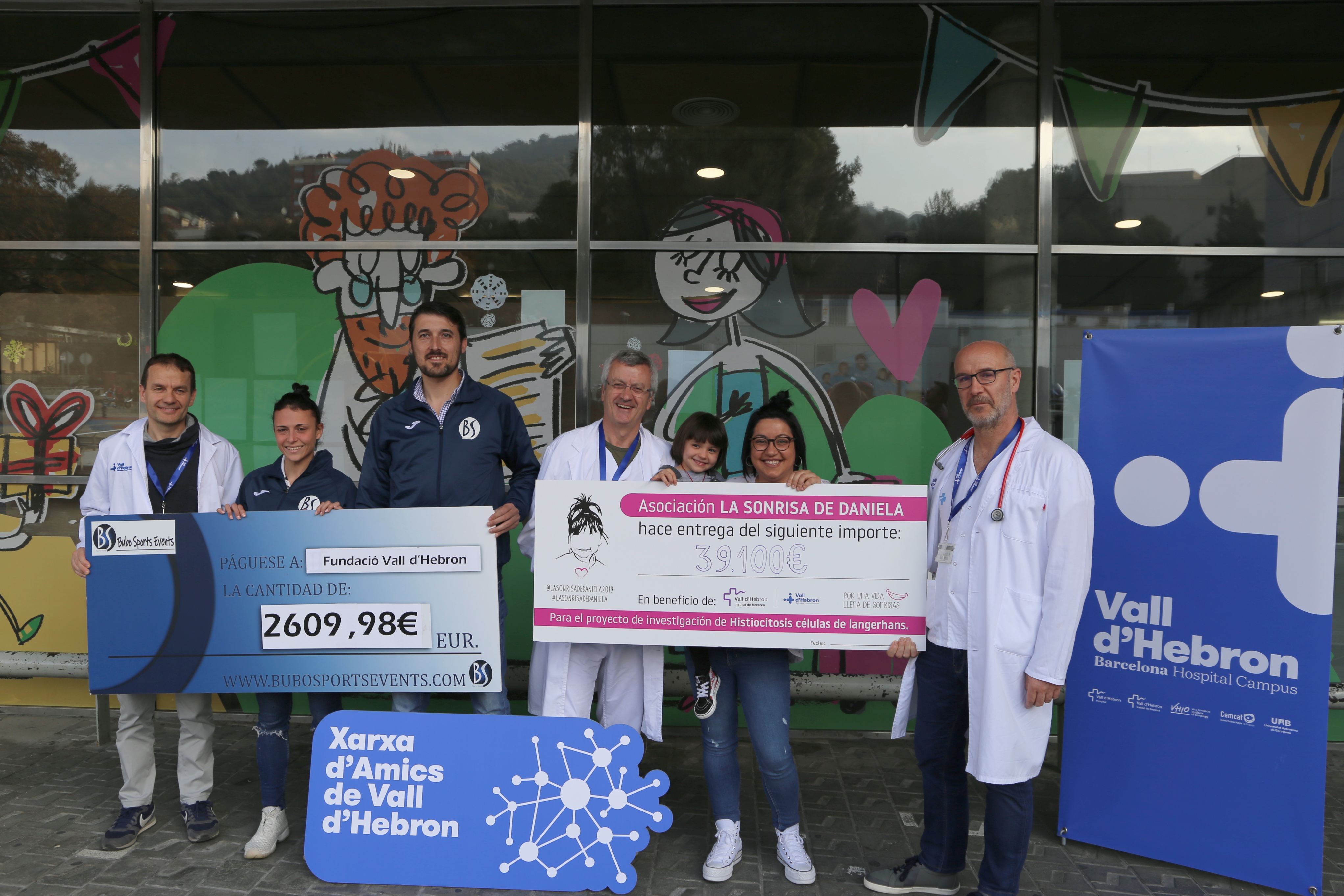 La Sonrisa de Daniela, una associació sense ànim de lucre que porta el nom d’una nena diagnosticada el desembre de 2016 amb histiocitosi de cèl·lules de Langerhans, ha recaptat els 39.100 € per ajudar a impulsar la recerca de la malaltia a través de diverses activitats, com estands, esdeveniments i venda de productes. Bubo Sports Events ha aportat al VHIR 2.609,98 € recaptats a través de l’organització de curses, com la Cursa Familiar i Solidària del Barri de Pomar, el setembre passat, i la cursa nocturna Bada Trail, celebrada el novembre passat: va destinar-se 1 € de la inscripció de cada participant en l’Associació La Sonrisa de Daniela.