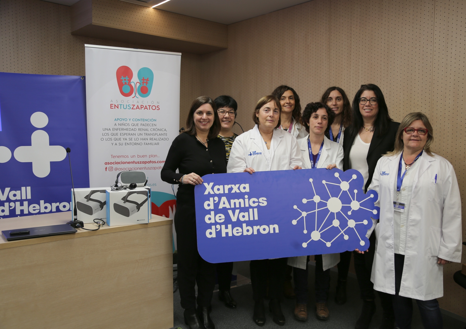 L’acte d’entrega de l’equip de realitat virtual va comptar amb la presència de la junta directiva d’En tus zapatos encapçalada per la seva presidenta Sol López, la Subdirectora Assistencial Quirúrgica i de Crítics de Vall d’Hebron, la Dra. Rocío Cebrián, la Dra. Gema Ariceta, i Teresa Eixarch, cap d'infermeria de la Unitat de Nefrologia Pediàtrica. El software, desenvolupat per la Plataforma de Realitat Virtual Psious, permet anticipar als nens que han de ser trasplantats escenaris futurs i també compta amb un component lúdic i tècniques de distracció per fer front a l’estrès i l’ansietat.