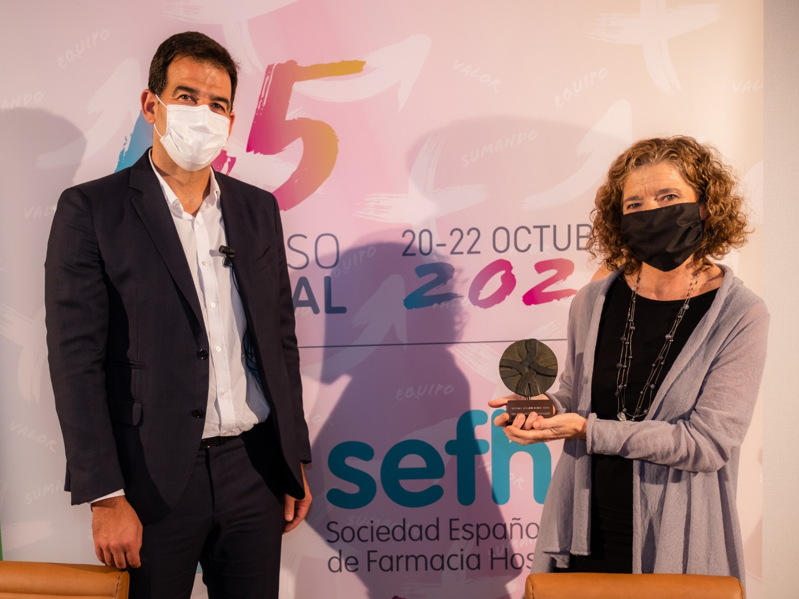 Maria Josep Carreras, cap de la secció de Farmàcia Oncohematològica de l’Hospital Universitari Vall d’Hebron, ha rebut la Medalla Joaquín Bonal, el reconeixement més prestigiós que entrega cada any la Societat Espanyola de Farmàcia Hospitalària (SEFH) en el 65è Congrés d’aquesta entitat. La condecoració, entregada pel Dr. Jordi Nicolás, vicepresident de la SEFH, reconeix la trajectòria de Maria Josep Carreras en l’àmbit de la farmàcia oncohematològica i per la seva implicació amb la Societat Espanyola de Farmàcia Hospitalària. La SEFH és una organització científica, privada, activa i professional, sense ànim de lucre, dedicada a incrementar l'estat del coneixement sobre la farmàcia hospitalària i l'ús adequat i segur dels medicaments.