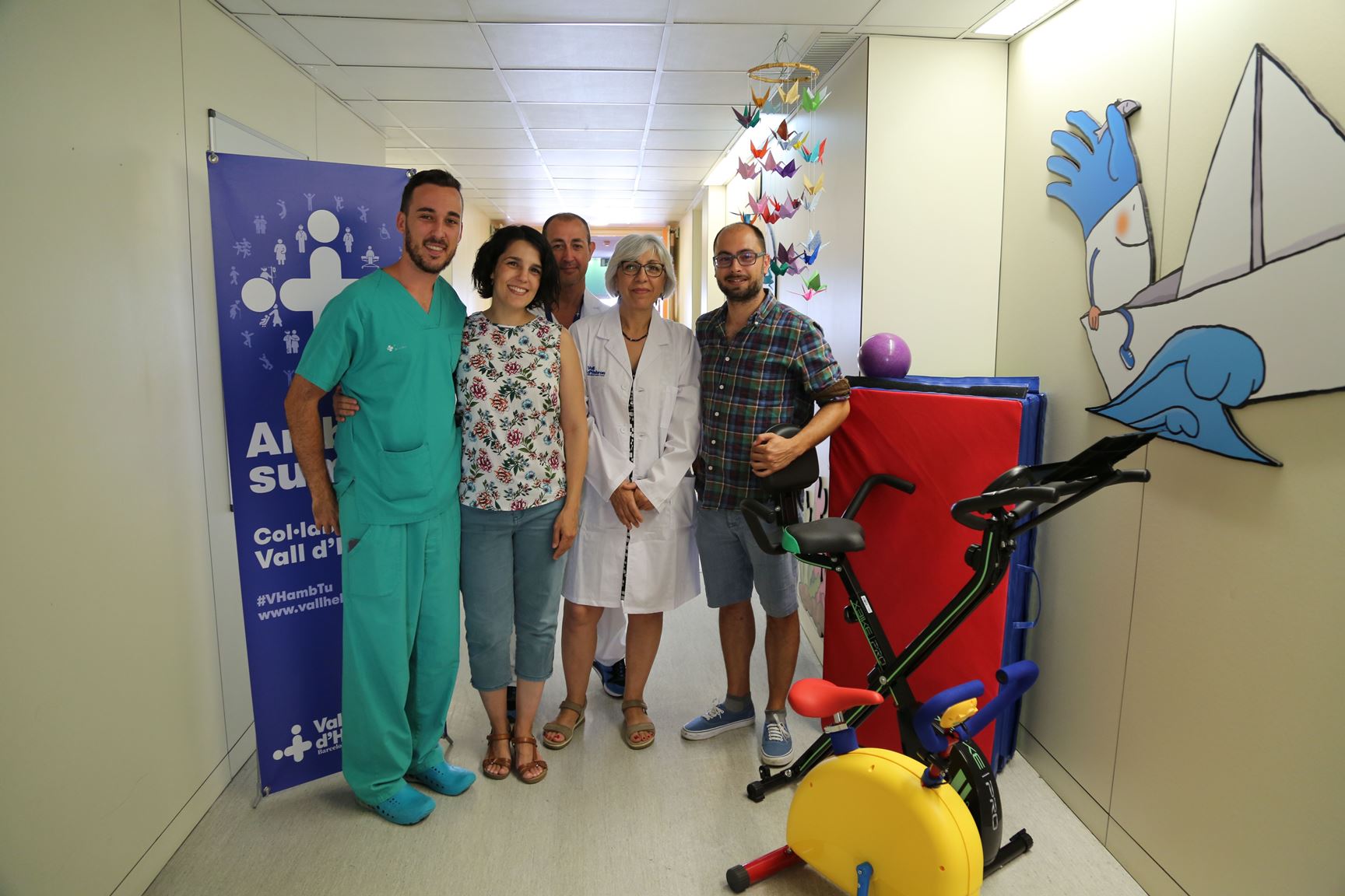 El nostre Servei de Rehabilitació a l’àrea d’Oncologia i Hematologia Pediàtriques ha pogut ampliar el material de fisioteràpia del qual disposa gràcies a la donació de la família d’un pacient com a mostra d’agraïment per l’atenció que va rebre el seu fill a Vall d’Hebron. Noves bicicletes estàtiques, matalassets plegables per fer exercici a les habitacions i pilotes són alguns exemples de les adquisicions que s’han fet gràcies a la donació de la família. Segons explica Laura, la mare del pacient, per a ells va ser molt important sentir que estaven fent alguna cosa pel seu fill donant-li suport tant en la part física com emocional i marcar-se l’objectiu diari d’ajudar-lo en els seus exercicis. Amb la seva donació volen animar a altres pares de l’àrea d’Oncologia i Hematologia Pediàtriques a fer el mateix i agrair l’atenció que van rebre per part del personal de Vall d’Hebron. El tracte rebut va anar més enllà del purament professional pel grau d’implicació que els professionals sanitaris mostraven amb tots els nens.