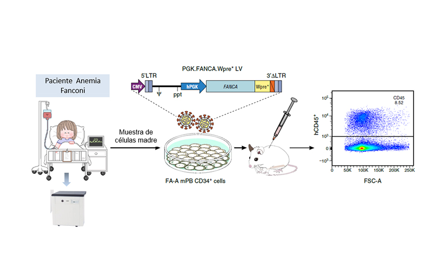 D'aquesta manera, els científics han demostrat per primera vegada que mitjançant un procediment de teràpia gènica, cèl·lules mare de pacients amb anèmia de Fanconi poden generar en els ratolins trasplantats cèl·lules sanguínies humanes lliures de malaltia.