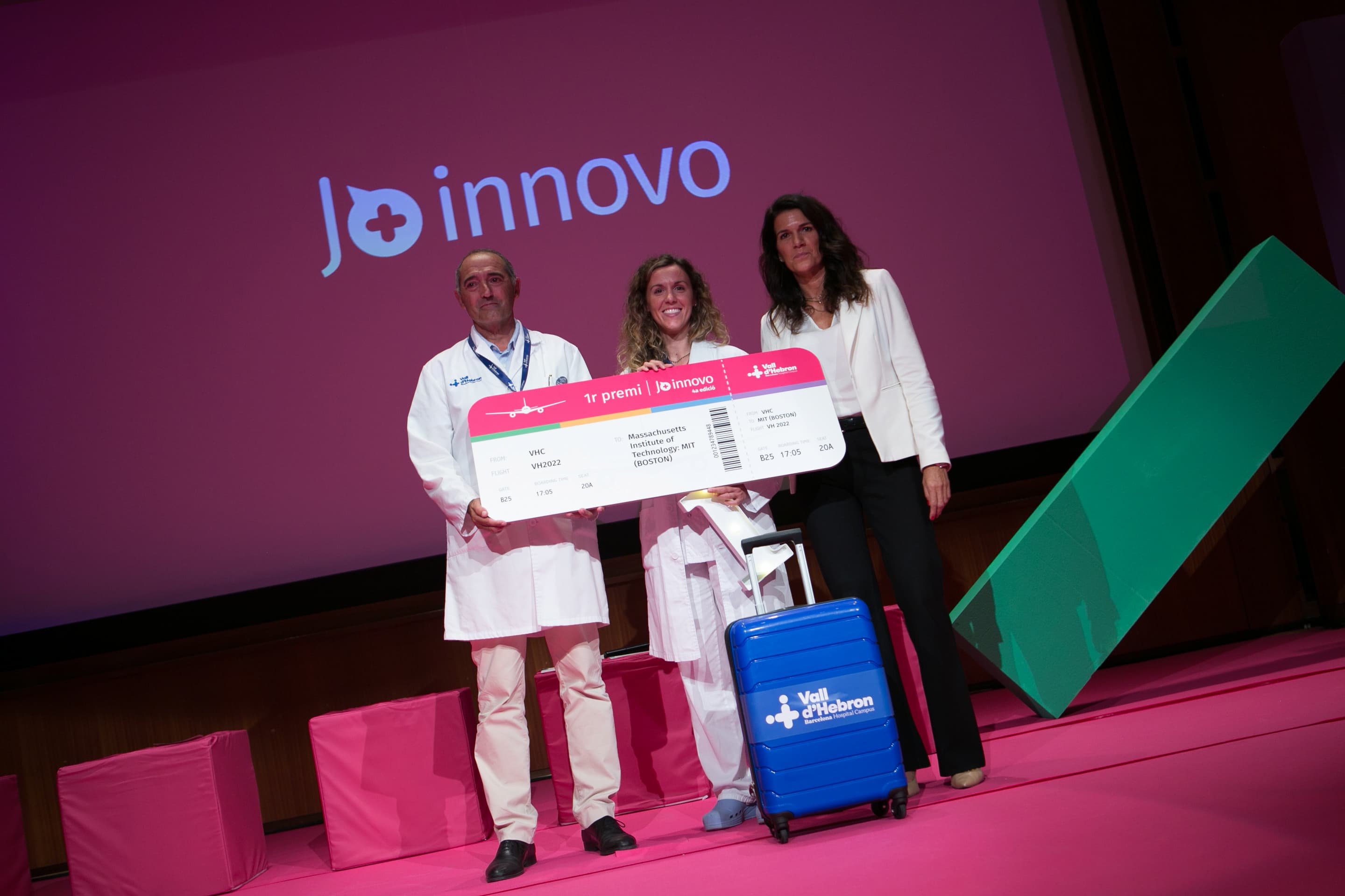 El projecte guanyador de la Jornada, presentada per la periodista Maria Xinxó, és una aplicació per humanitzar la col·locació de catèters venosos en els pacients pediàtrics, pensada sobretot per a pacients adolescents i preadolescents i ideada per la infermera Carme Ainara Donat, de l'equip d'infermeria d'accessos venosos, dins de la categoria Atenció centrada en el pacient i la família. L'ansietat anticipatòria que genera als pacients pediàtrics la col·locació d'aquests catèters fa necessària en moltes ocasions la sedació. El projecte guanyador de la 4a edició del Jo innovo té com a objectiu distreure i relaxar els pacients a través de vídeos on se'ls explica prèviament la tècnica per col·locar-los un dispositiu d'accés venós tipus PICC (catèter venós d'inserció perifèrica) o midline (catèter de línia mitjana) i inclou també un formulari perquè els pacients indiquin quines eines de distracció i relaxació prefereixen per a la col·locació del catèter. “Estic emocionada, em fa moltíssima il·lusió, no ens ho esperàvem pel nivell de les idees que han participat en aquesta edició del Jo innovo. Vull agrair aquest premi sobretot al meu equip, estem convençudes que podem millorar molt la qualitat dels accessos venosos en els pacients pediàtrics amb la nostra idea”, ha manifestat Carmen Ainara Donat, una de les autores de la idea guanyadora, en recollir el guardó de la mà del Dr. Albert Salazar, gerent de l’Hospital Universitari Vall d’Hebron, i Rita Casas, directora regional de Roche Farma a Catalunya. “L'element principal del Jo innovo és que la innovació es posa al servei de la millora de la qualitat en l'atenció als pacients”, ha destacat el Dr. Albert Salazar al final de la Jornada Jo innovo.