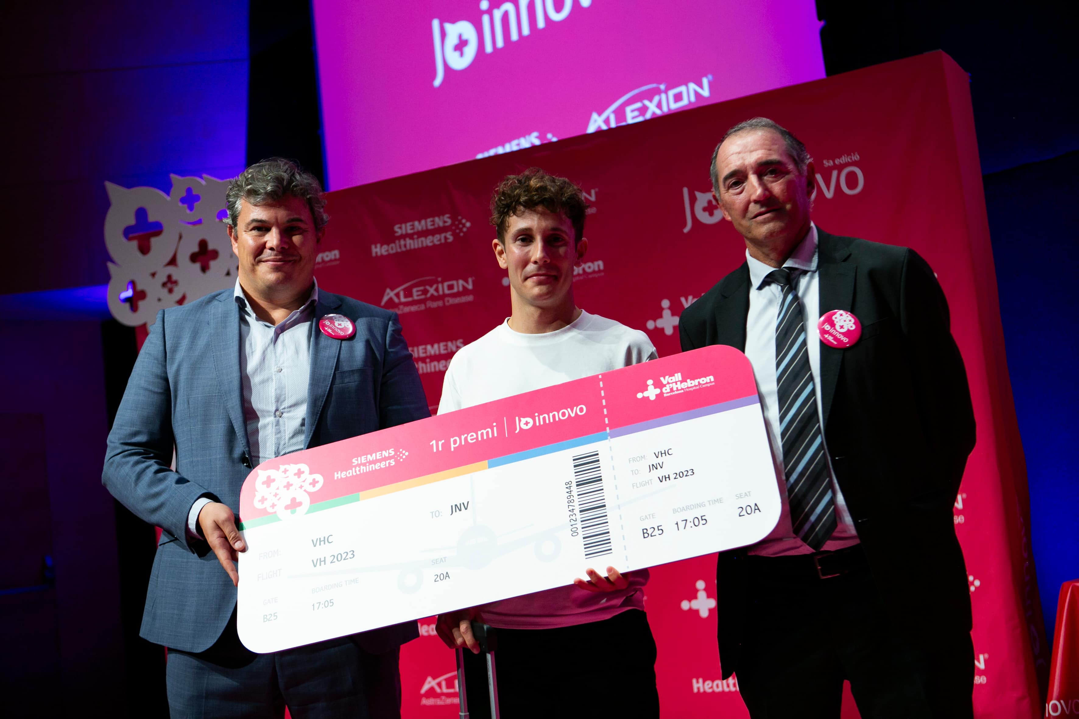La Setmana de la Innovació ha culminat avui amb la 5a edició del concurs d'innovació Jo innovo al CosmoCaixa de Barcelona, un concurs d’idees obert a tots els professionals de Vall d’Hebron patrocinat per Siemens Healthineers i Alexion, AstraZeneca Rare Disease que incentiva que els treballadors presentin projectes innovadors en quatre categories: ‘Atenció centrada en el pacient i la família’; ‘Talent, desenvolupament i benestar professional’; 'Organització, qualitat i seguretat’; i ‘Sostenibilitat, eficiència i responsabilitat social’. El guanyador de la cinquena edició del Jo innovo ha estat el projecte ‘Suport d’Alt Nivell per a Situacions Crítiques: revolucionant la resposta a l’aturada cardíaca amb una aplicació innovadora’, del Marc Mendo, resident del Servei d’Anestesiologia, Reanimació i Tractament del Dolor de l’Hospital Universitari Vall d’Hebron, que ha rebut el Premi Siemens Healthineers Jo innovo 2023 de la mà del Dr. Albert Salazar, gerent de l’Hospital Universitari Vall d’Hebron, i Alberto Martínez Gómez, director general de Siemens Healthineers Espanya, consistent en el compromís per part de Vall d’Hebron de desenvolupar i implementar la seva idea i una maleta i un xec en forma de bitllet d’avió per un viatge i una experiència a l’Institut Karolinska; un dels hospitals que formen part de la European University Hospital Alliance (EUHA), com Vall d’Hebron, i una de les institucions universitàries especialitzades en medicina més prestigioses del món.