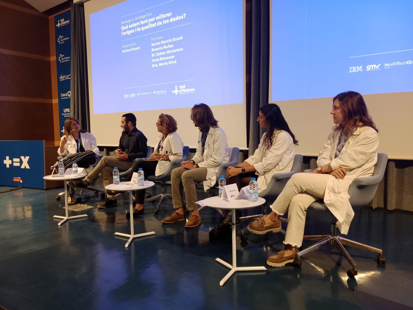 'Sumem dades, multipliquem coneixement' ha començat amb la taula rodona 'Gargabe In, Garbage Out: Què estem fent per millorar l'origen i la qualitat de les dades?', moderada per la Dra. Yolima Cossio, en la qual han participat Xavier Garcia Cuscó, analista de dades de la Unitat de Suport a la Gestió; Rosario Muñoz, cap de la Unitat de Documentació Mèdica; el Dr. Xabier Michelena, reumatòleg i consultor TIC; la infermera Irena Batuecas, de la Unitat de Gestió de Coneixement i Avaluació; i la Dra. Marta Olivé, neuròloga. En aquesta taula rodona s'ha parlat de la importància de vetllar per la qualitat de les dades des del seu mateix origen, i el valor de registrar les dades estructurades. Els participants han transmès als professionals com s'estan millorant a Vall d'Hebron la qualitat de les dades i quines estratègies es porten a terme al respecte: estructuració de les dades, codificació i inclusió de noves fonts com el Patient Report Outcome per facilitar l'explotació i repercutir en la millora de la presa de decisions i el retorn de la informació als professionals.