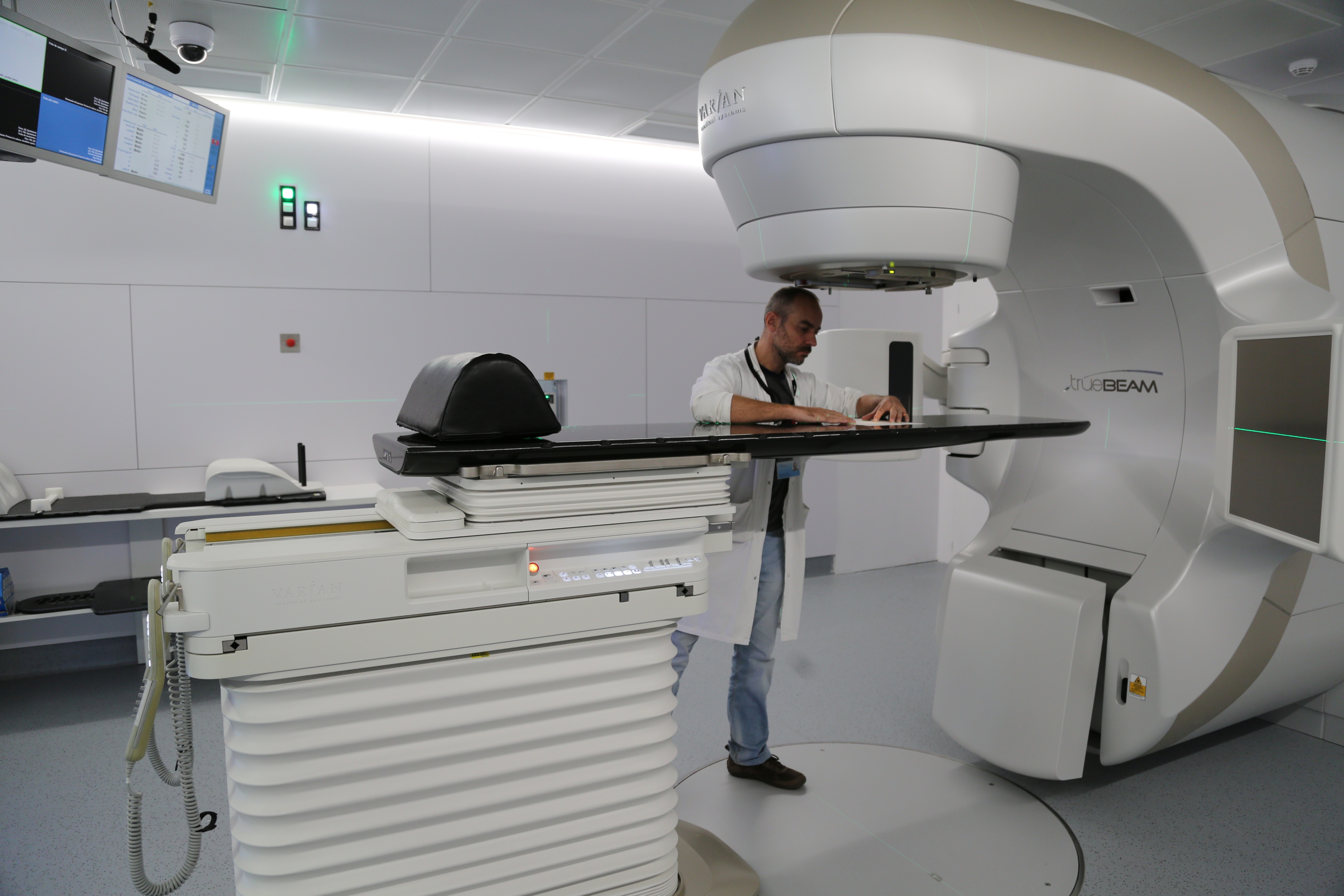Els pacients de Vall d’Hebron ja es beneficien del segon equip fruit de la donació realitzada per la Fundació Amancio Ortega a Catalunya. Es tracta de l’accelerador lineal de radioteràpia TrueBeam, especialment dissenyat per al tractament de pacients de càncer de pit, pulmó, cap, coll i fetge. L’accelerador TrueBeam incorpora un sistema de control respiratori que permet veure com evoluciona la respiració del pacient durant el tractament i un sistema de radioteràpia guiada per la imatge que procura una imatge de màxima qualitat. “Amb acceleradors d’última generació com aquest garantim que als tumors se’ls hi apliqui la radiació justa que els hi cal mentre que el teixit sa rep la mínima possible, i això redueix els efectes secundaris del tractament”, exposa el Dr. Jordi Giralt, cap del Servei d’Oncologia Radioteràpica.