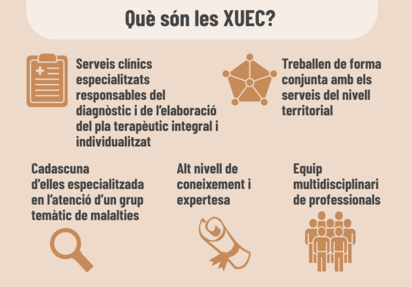 La XUEC coordina i facilita el flux de pacients entre centres d’atenció sanitària de Catalunya perquè persones amb malalties minoritàries renals complexes puguin ser ateses a les unitats d’expertesa clíniques reconegudes pel CatSalut, on compten amb equips multidisciplinaris i accés a noves teràpies via assajos clínics