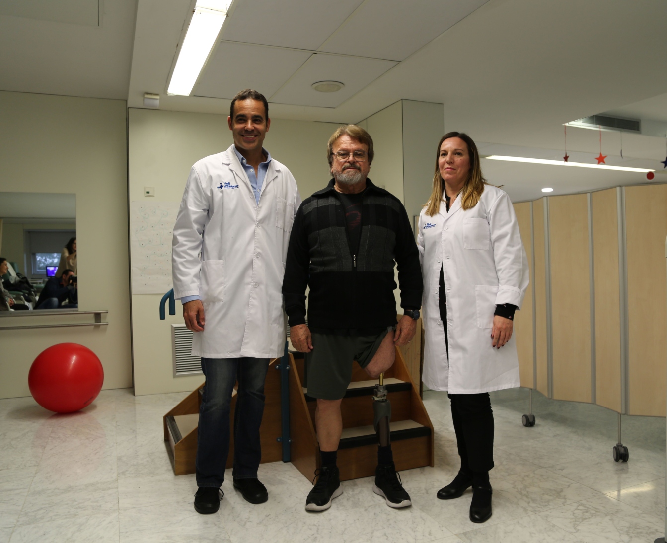 Vall d’Hebron és el primer hospital de l’Estat que realitza una cirurgia d’osteointegració en un sol temps a pacients amputats de l’extremitat inferior. L’osteointegració es basa en la capacitat de les cèl·lules òssies per adherir-se a una superfície metàl·lica. A Vall d’Hebron, mitjançant una única cirurgia (i no en dues cirurgies, com a la resta dels centres) s’insereix un implant de metall porós a l’os romanent de l’extremitat amputada, que surt a l’exterior a través d’un orifici a la pell del monyó (estoma), on es fixa l’extremitat artificial a través d’un connector universal. Gràcies a l’osteointegració, que va tenir com a primera aplicació clínica els implants dentals, els pacients amputats poden prescindir de l’encaix tradicional, la part extraïble de la pròtesi que la connecta al monyó. “Amb l’implant d’osteointegració, la qualitat de vida dels pacients amputats millora radicalment: caminen més i millor, prescindeixen de l’encaix i de les seves complicacions associades i, com que la pròtesi va unida directament a l’os, la integren al seu cos d’una forma més natural, recuperant l’osteopercepció o capacitat d’identificar sensacions a través de la pròtesi”, explica el Dr. Pablo Corona, cirurgià ortopèdic de la Unitat de Patologia Sèptica i Cirurgia Reconstructiva de l’Aparell Locomotor de Vall d’Hebron.