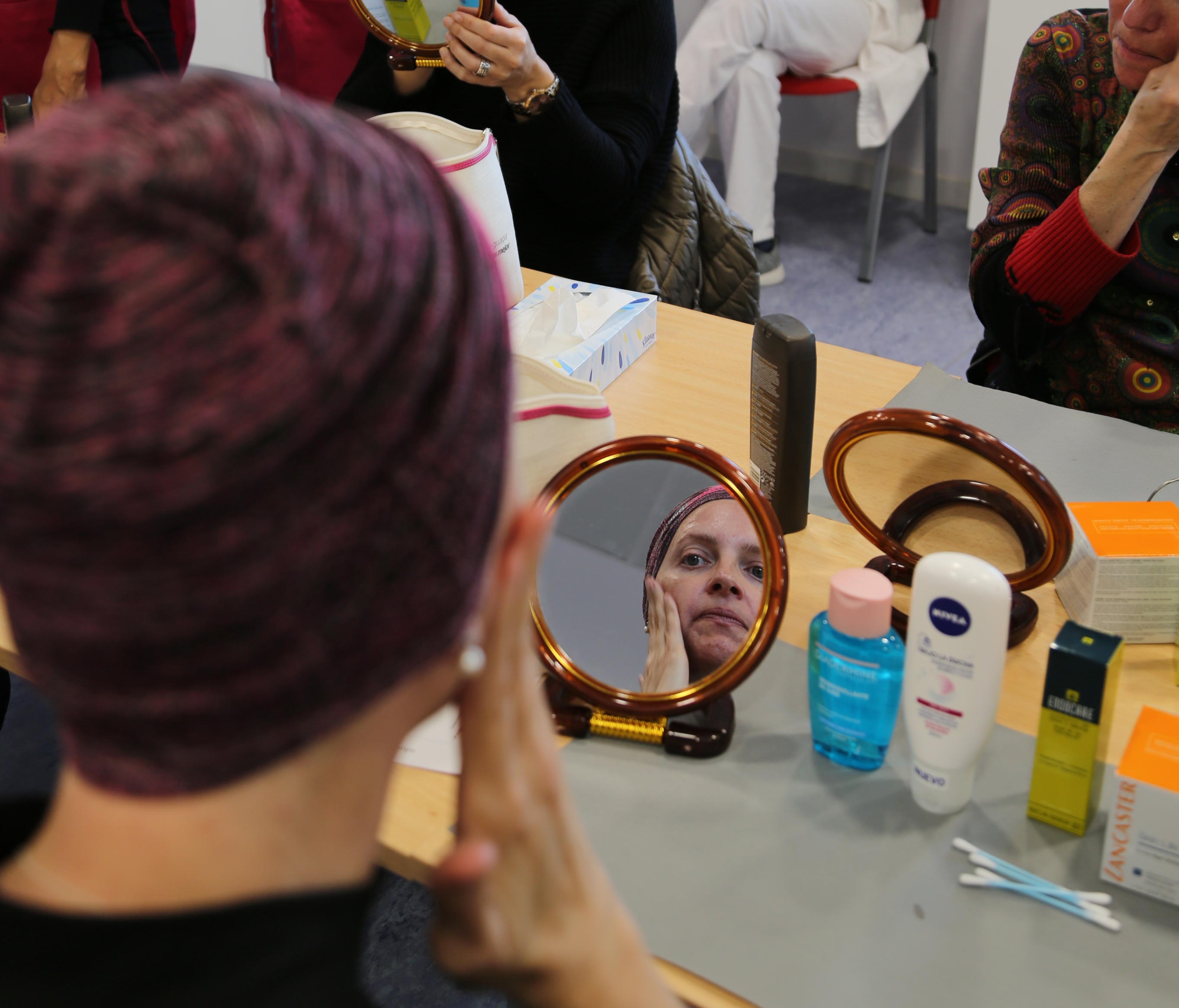 Durant els tallers, esteticistes i maquilladores voluntàries ensenyen a les dones a cuidar la seva pell, a protegir-se del sol i a maquillar-se durant el tractament