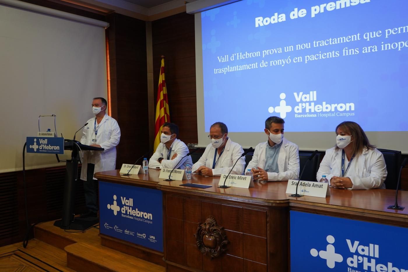 El primer pacient a Vall d’Hebron en participar en aquest estudi ha estat un home de 54 anys que des del 1984 requeria diàlisi a causa d’una malformació en les vies urinàries que li van causar l’aparició progressiva d’insuficiència renal crònica terminal. Després de dos intents de trasplantament el 1991 i el 1996 sense èxit, el sistema immunitari del pacient va quedar sensibilitzat i els seus nivells d’anticossos eren molt elevats, la qual cosa ha fet impossible trobar un donant compatible durant tots aquests anys.