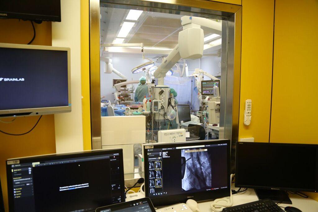 Ara, Vall d’Hebron lidera un canvi de paradigma en l’abordatge d’aquests pacients. En comptes de sotmetre’ls a dos ingressos, els professionals de Cirurgia Cardíaca i Hemodinàmica realitzen ambdues intervencions en el mateix ingrés al quiròfan híbrid d’alta tecnologia. Com assenyala el Dr. Carlos Sureda, del Servei de Cirurgia Cardíaca, “el quiròfan híbrid és un quiròfan que a més compta amb equips d’imatge d’última generació (radiològica i ecocardiogràfica). És, per tant, una sala d’hemodinàmica combinada amb un quiròfan”. Els professionals ja han realitzat dues cirurgies híbrides, és a dir, cirurgia cardíaca i intervenció hemodinàmica alhora, en dos pacients amb una cardiopatia congènita de l’adult. En el primer dels casos, els cirurgians cardíacs van obrir el pacient per canviar una vàlvula per a solucionar una estenosi aòrtica congènita i els hemodinamistes van col·locar un stent per obrir l’aorta, que era massa estreta. Gràcies al fet que les dues intervencions es van fer en el mateix ingrés, els hemodinamistes van aprofitar el camí obert pels cirurgians per col·locar l’estent amb una major precisió que si ho haguessin fet per via percutània. Com explica el Dr. Miguel Ángel Castro, del Servei de Cirurgia Cardíaca, es tracta de fer “dues intervencions en un ingrés per reduir els riscos per al pacient i facilitar la seva recuperació”. En el segon cas, els cirurgians van obrir el tòrax perquè els hemodinamistes col·loquessin una vàlvula transcatèter en una vàlvula tricúspide. Per tant, la cirurgia híbrida combina els avantatges de la cirurgia cardíaca, que permet obrir el camí perquè els hemodinamistes arribin amb més facilitat als racons del cor on han de col·locar els catèters.
