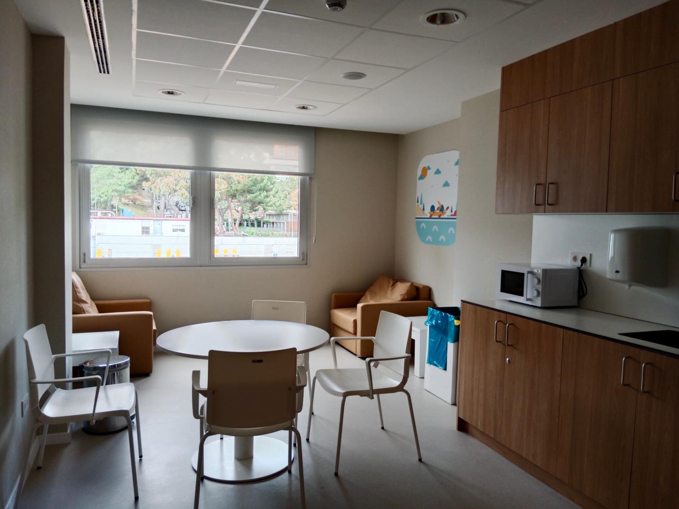 La nova Àrea d’Atenció Postquirúrgica s’ha dotat de la màxima calidesa, amb predomini del blanc, els colors càlids i acabats que imiten la fusta, així com parets decorades amb vinils inspirats en ciutats d’Amèrica del Nord. Totes les habitacions són exteriors i disposen d’un lavabo adaptat i una televisió individualitzada per a cada pacient, així com una butaca totalment reclinable que facilita el descans de l’acompanyant. La presa d’aire, oxigen i buit està integrada dins un moble, així com el material sanitari, totalment a l’abast del professional sanitari però de forma que l’habitació s’assembli tant a una llar com sigui possible. La nova Àrea d’Atenció Posquirúrgica Pediàtrica disposa a més d’una sala de jocs i una sala perquè les famílies puguin fer els àpats i descansar, equipada amb microones, nevera, taula i cadires i sofàs. També s’ha habilitat una sala d’atenció als familiars, on poden mantenir converses sobre qüestions relatives a la seva atenció amb el personal sanitari amb intimitat. “En repensar l’espai s’ha tingut en compte les necessitats quotidianes que les famílies dels pacients pediàtrics presenten en el seu dia a dia, per tal de facilitar-los al màxim l’acompanyament dels seus fills durant el temps d’ingrés postquirúrgic al nostre hospital”, explica Mònica Castro, supervisora d’Infermeria de l’Àrea d’Atenció Postquirúrgica de l’Hospital Infantil.
