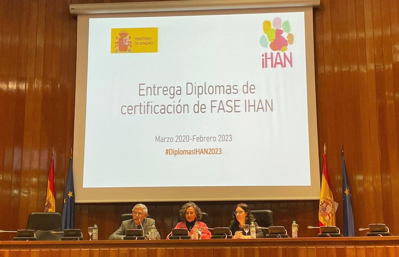 Representants de la Subcomissió de Lactància recullen al Ministeri de Sanitat el certificat de la Fase 1D de la Iniciativa per a la Humanització de l’Assistència al Naixement i la Lactància (IHAN) que promou l’OMS i UNICEF.