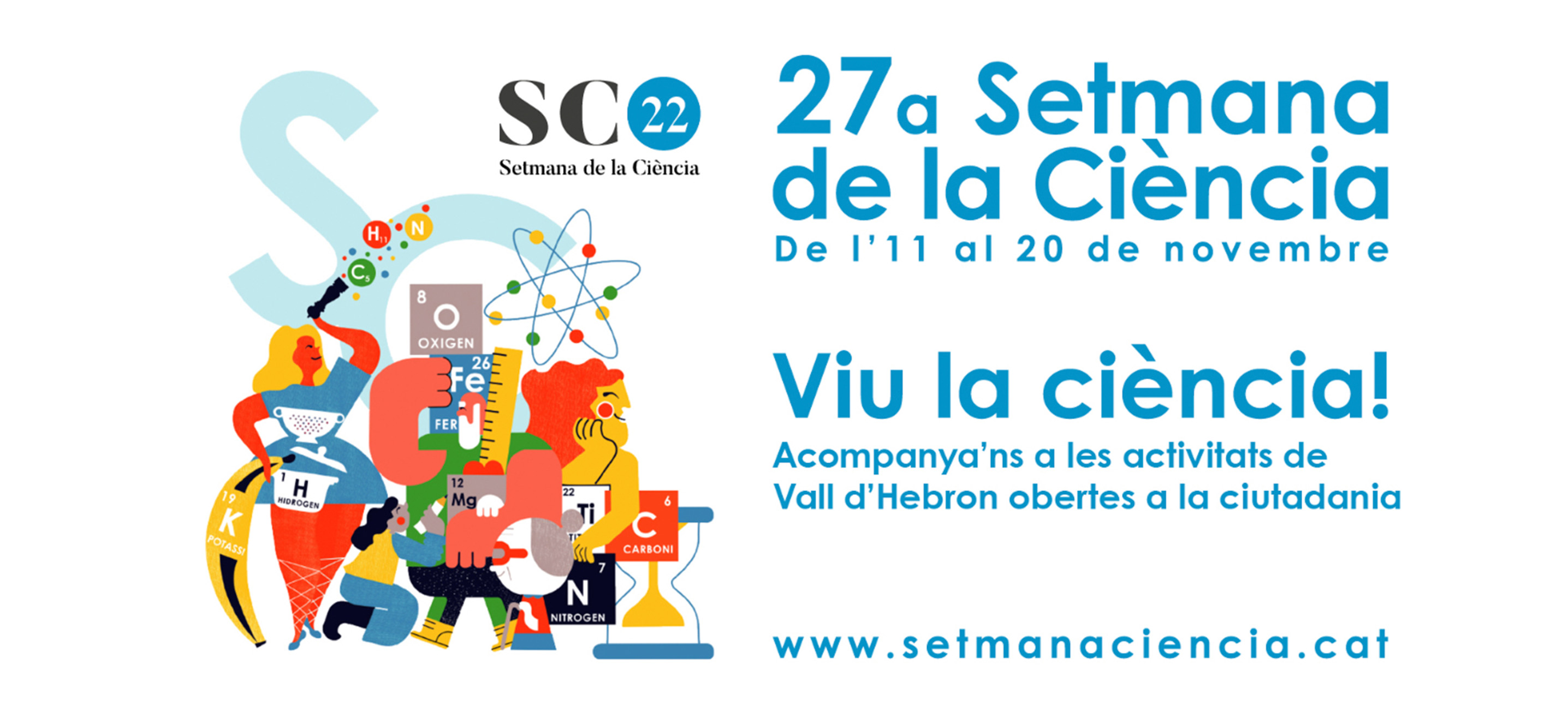 Els investigadors i investigadores de Vall d’Hebron participaran fent xerrades i tallers un any més durant la Setmana de la Ciència, que tindrà lloc entre l’11 i el 20 de novembre. Durant aquesta setmana, tindran lloc diferents activitats per apropar la ciència i la tecnologia a la ciutadania. Jornades de portes obertes, activitats virtuals, exposicions, tallers científics... Serà una gran oferta amb diferents formats a l’abast de tothom amb l’objectiu de fomentar les vocacions científiques entre els més joves. És una iniciativa coordinada per la Fundació Catalana per a la Recerca i la Innovació (FCRI) que compta amb el suport de nombroses institucions i entitats en l’àmbit de la recerca i de la divulgació de la ciència i la tecnologia.