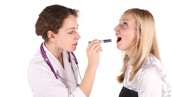 La manifestació característica de la diftèria respiratòria és la formació de membranes de color blanc grisós (pseudomembranes) a les amígdales i la faringe. Les membranes solen estar molt adherides i això fa que sagnin amb facilitat.