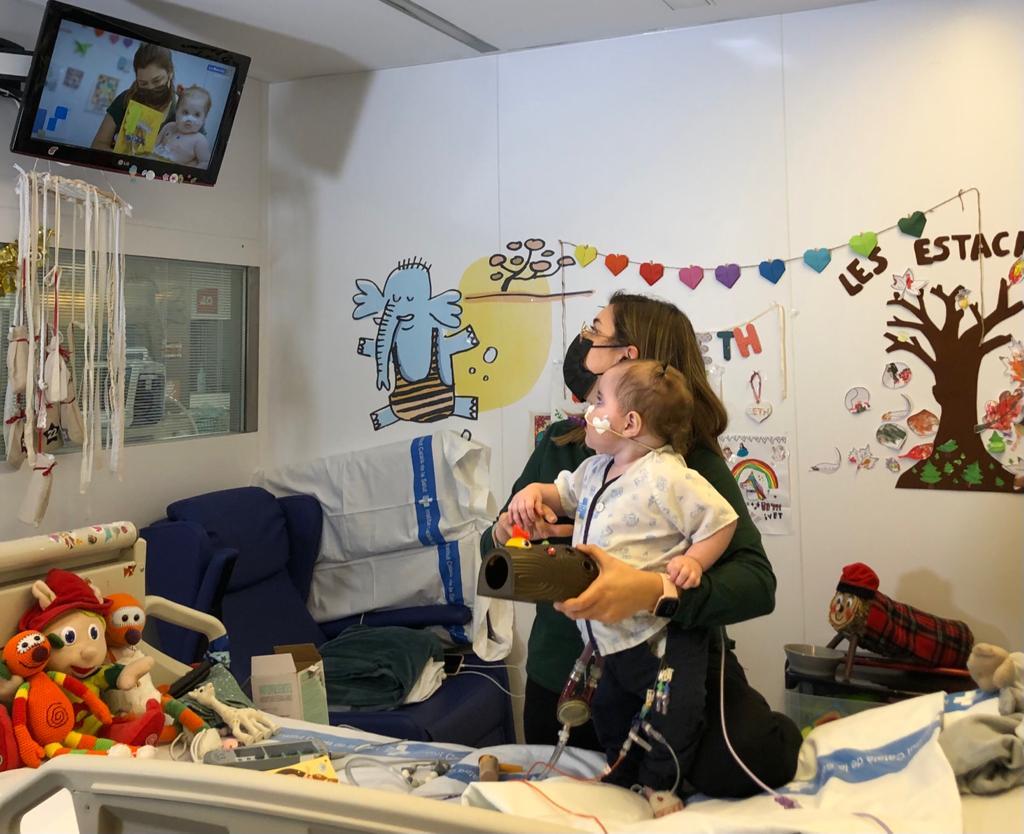 Cada día nacen 600 niños con una cardiopatía en Cataluña. En las cardiopatías más graves, la última oportunidad es un trasplante. Vall d’Hebron es el centro de referencia en Cataluña en trasplante de corazón pediátrico. De las 20 camas que tiene a la UCI pediátrica, habitualmente, cinco están ocupadas por niños con una cardiopatía. "En estos momentos, hay cuatro niños que esperan un trasplante", explicó el Dr. Joan Balcells, jefe de la UCI pediátrica de Vall d’ Hebron e investigador del VHIR. El Dr. Joan Balcells llevó al plató de La Marató la historia de la Bet, una niña de dieciséis meses que hace doce meses que está en la UCI esperando un corazón. Lo acompañaba el padre de Bet, Gerard Badosa, que compartió la montaña rusa de emociones que la familia ha vivido en los últimos meses. La Bet tiene una miocardiopatía dilatada, como Uma, y necesita un trasplante. Su corazón desde hace cuatro meses es una máquina llamada Berlin Heart. Bet vive noche y día en un box de cuidados intensivos, pero para ver la luz del sol, la UCI pediátrica de Vall d’Hebron tuvo una idea, el sol solet, una iniciativa para que los niños salgan al exterior. "Un día en la semana, Bet sale a ver la luz del sol, al exterior, ahora, está aprendiendo a andar", explica su madre, Sara Batllosera.