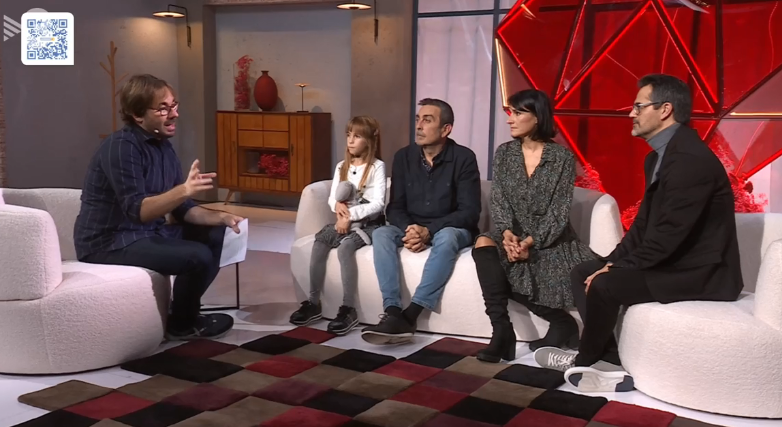 Gala y su madre, acompañadas de su médico, el Dr. Ferrarn Rosés, coordinador de Cardiología Pediátrica de Vall d’Hebron e investigador del VHIR, cogieron el relevo de Bet. Gala acaba de cumplir 9 años y sabe qué es vivir en un hospital. "Tenía un corazón regulín", explicó al plató, donde demostró que sabe distinguir una vía de una sonda y está familiarizada con los saturadors. Gala tiene una cardiopatía congénita y gracias a una intervención pionera que se ha hecho solo dos veces, las dos en Vall d’Hebron, “está estable, sin marcapasos y no sufre pérdidas de conocimiento”, dice el Dr. Ferran Rosés.