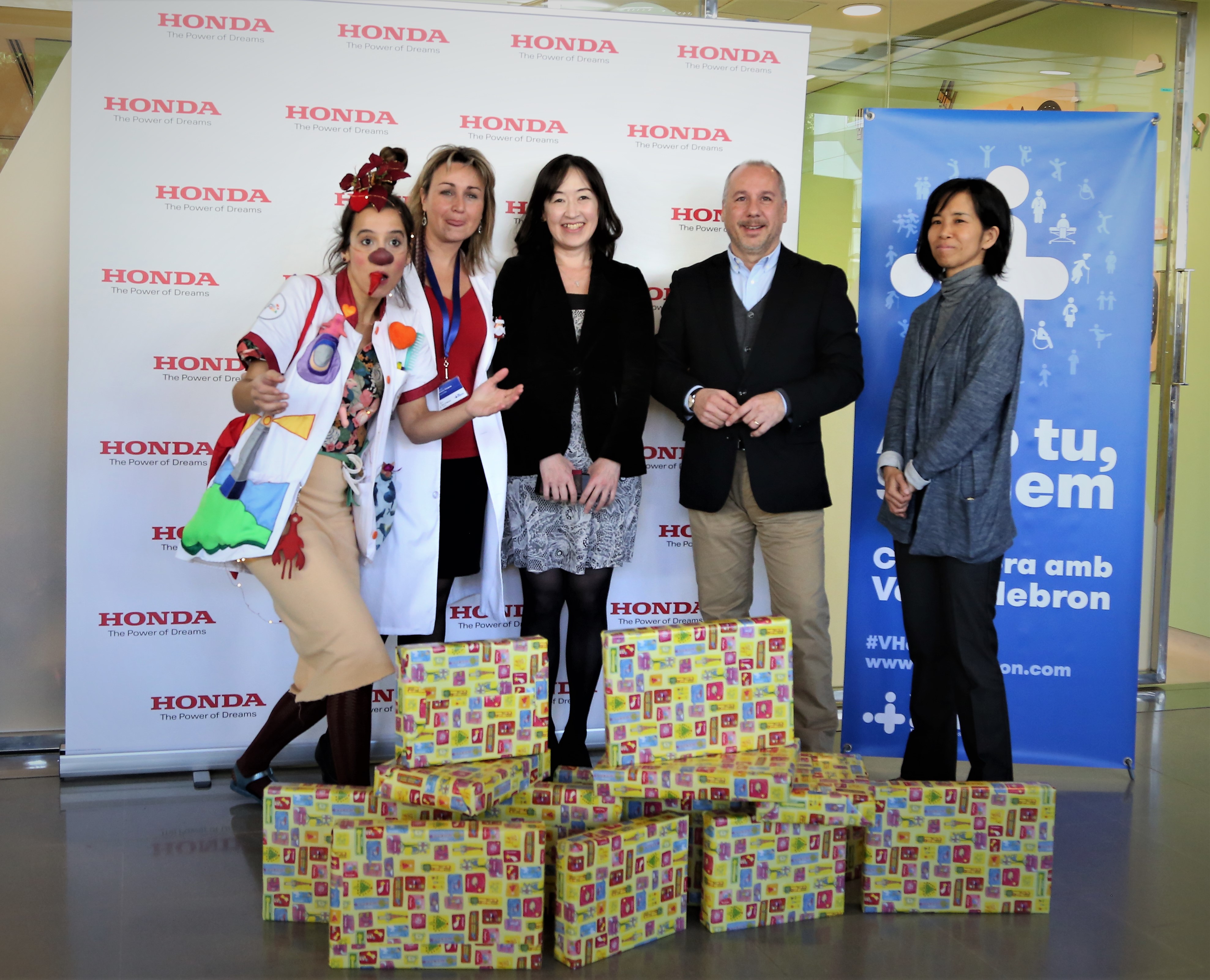 La entrega de los juguetes, que tuvo lugar en la entrada del Hospital Materno Infantil, contó con la presencia de la vicepresidenta de la compañía Honda la Sra. Madoka Chujo y otros empleados de la empresa, a quienes recibieron en representación de Vall d’Hebron, Eunice Blanco, Jefa de Atención a la Ciudadanía y Trabajo Social del Hospital Materno Infantil. La recepción de los juguetes también contó con la presencia de la payasa Dr. Sonrisa que suele amenizar la estancia de los pequeños hospitalizados y sus familiares.