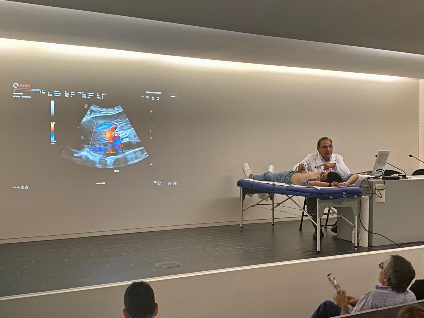 Ecografía en directo en la inauguración de la exposición.
