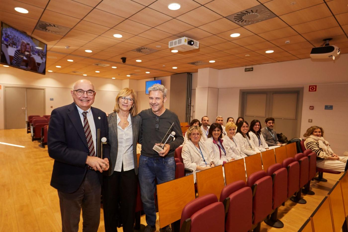 La entidad ha hecho entrega de una escultura conmemorativa a Marc Donés, hermano del fallecido Pau Donés y al Dr. Josep Tabernero, jefe de Servicio de Oncología Médica del Hospital Universitari Vall d’Hebron y director del VHIO.