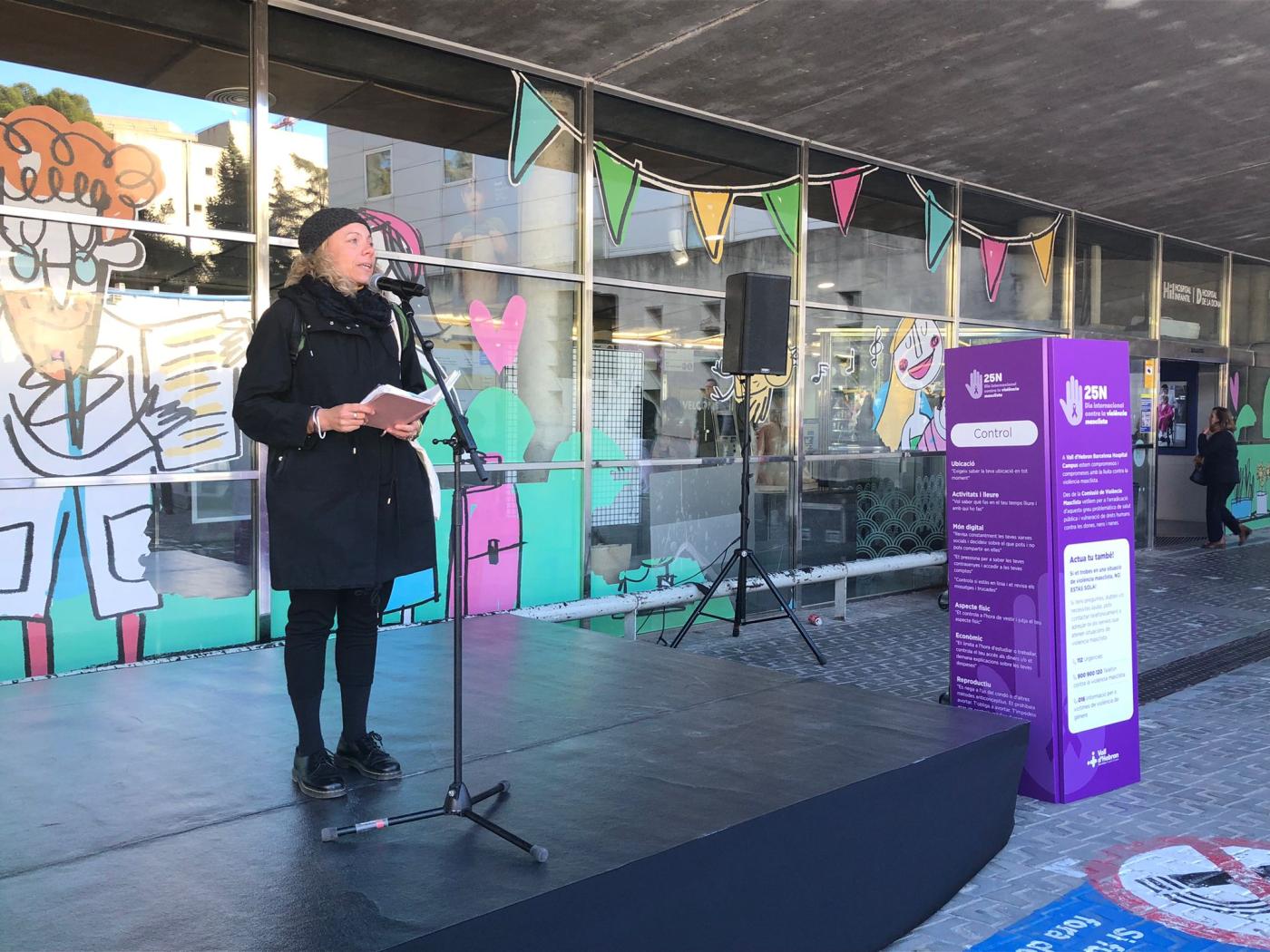 A continuación, Ariadna Gomà y Cristina Soler, miembros de la Comisión transversal de Violencia Machista del Hospital Universitario Vall d'Hebron, han leído un manifiesto contra la violencia machista. "En nuestro ámbito, destacamos la importancia en la diligencia debida, que significa la obligación profesional de actuar responsablemente de acuerdo con los protocolos y legislación determinada, cuando conocemos una situación de violencia machista", destaca el manifiesto. Ofrecer a las víctimas una atención centrada en la persona, que tenga en cuenta la interseccionalidad ha sido otro de los puntos que se ha puesto de relieve: es necesario identificar los ejes discriminatorios como la etnia, género, edad, funcionalidad, clase como condicionantes que pueden determinar un impacto en la situación de violencia machista. También recordar que "los hijos e hijas que están en situación de violencia machista también son víctimas directas", han expuesto Gomà y Soler.